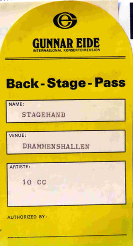 10 cc hadde som scene-bakgrunn en kjempestor spole-båndopptager (type Tandberg). Spolene ble drevet av to elektromotorer som hver seg veide 300 kg. Vi var 15 mann for å løfte og heise disse 3 meter opp i et vaklevorent stilas. (Kom ikke til med truck).